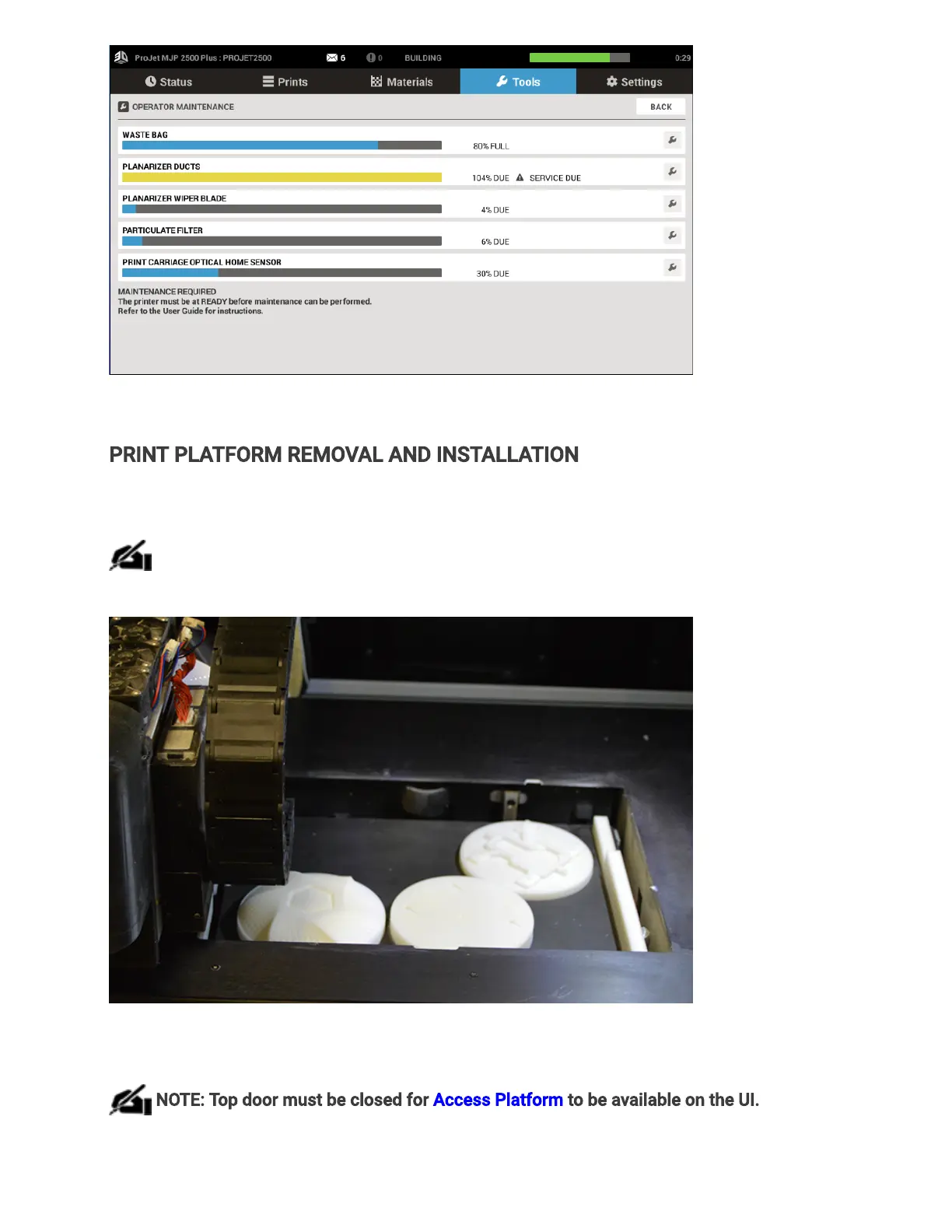 PRINT PLATFORM REMOVAL AND INSTALLATION