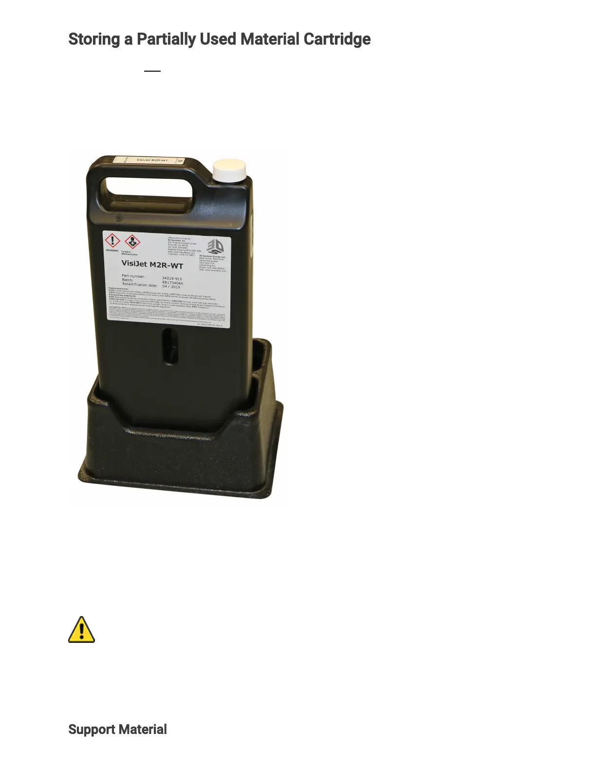 VisiJet® support material cartridges may be disposed of in ordinary oce trash.