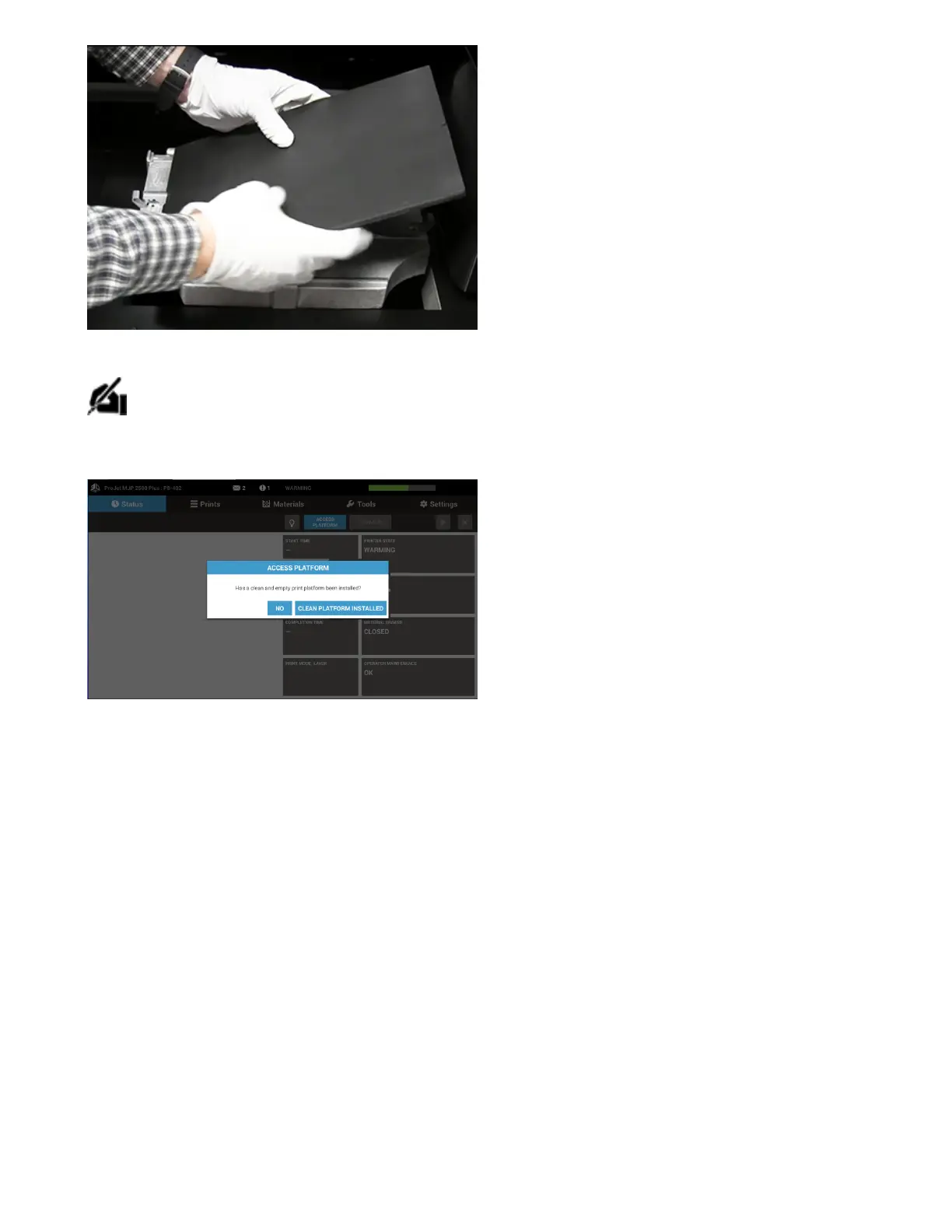 . A message will display (see below) asking user to conrm that the platform is clean, verify the platform is clean.