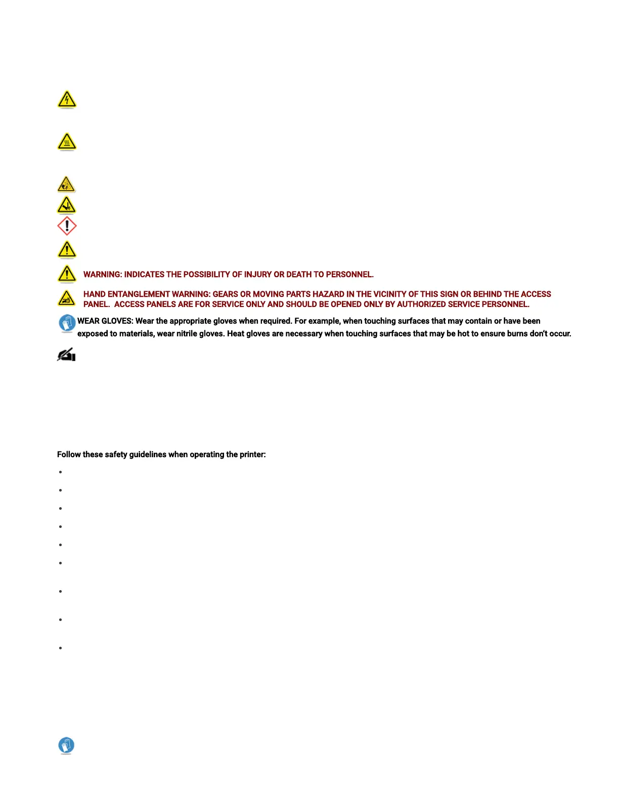 Do not ignore warning signs posted during 3D printer system service operations.If an error message appears on the 3D printer system’s User