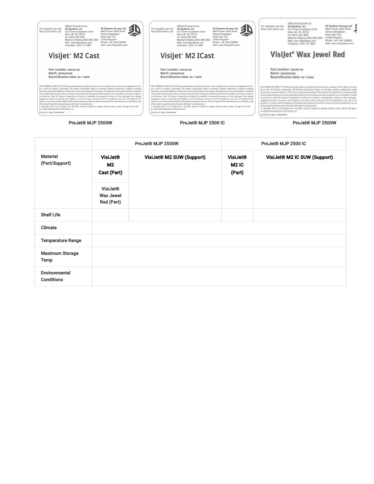 or 3D Systems Technical Support can assist with questions on materialrequiringrecertication.