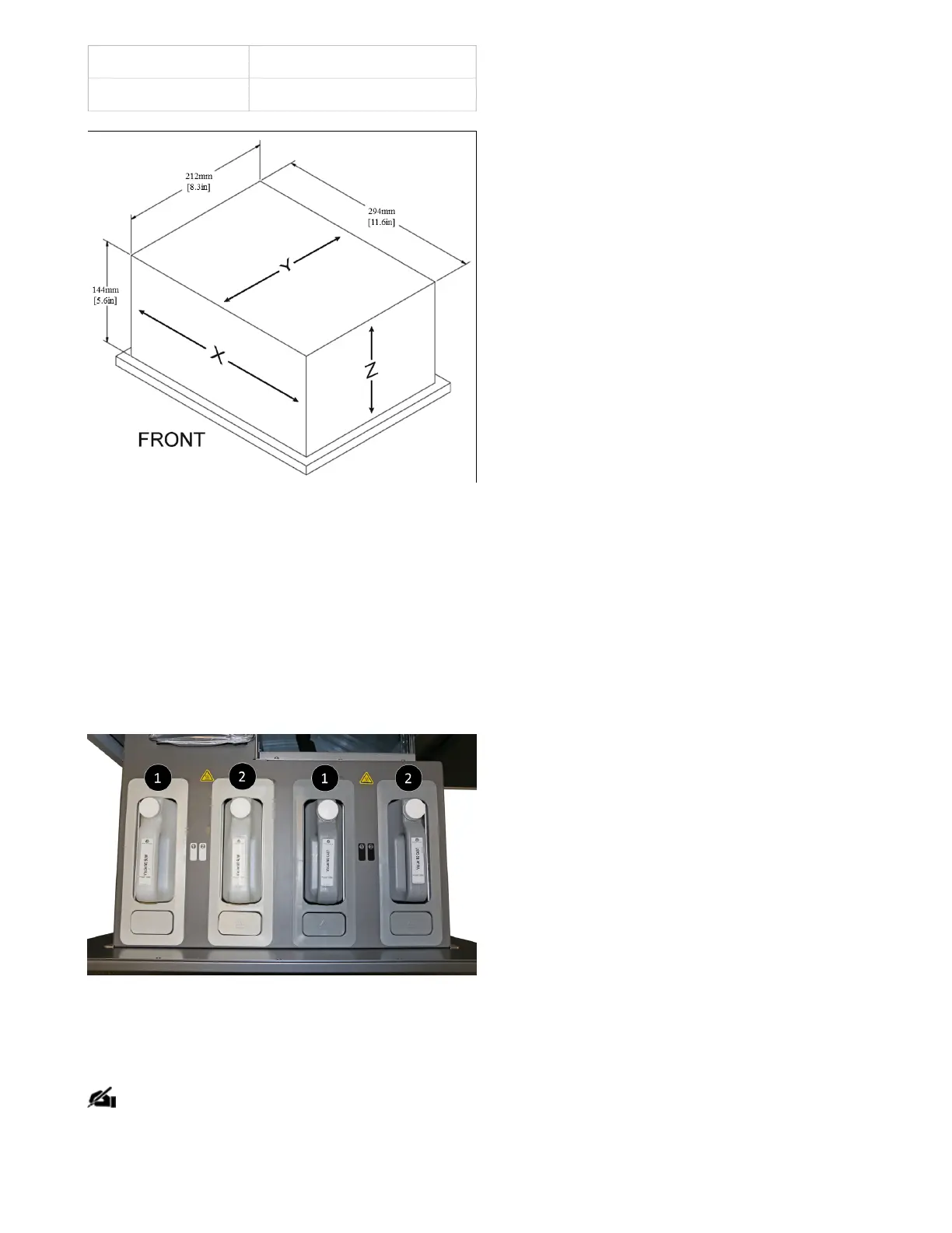 Support Material Containers 1 and 2: These containers hold the VisiJet® M2 SUW or VisiJet® M2 IC SUW (Printer specic)support material