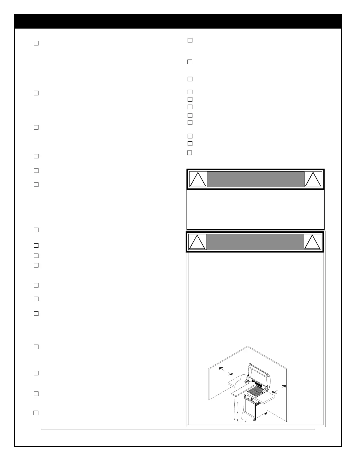 Never use your gas grill in a garage, porch, shed,