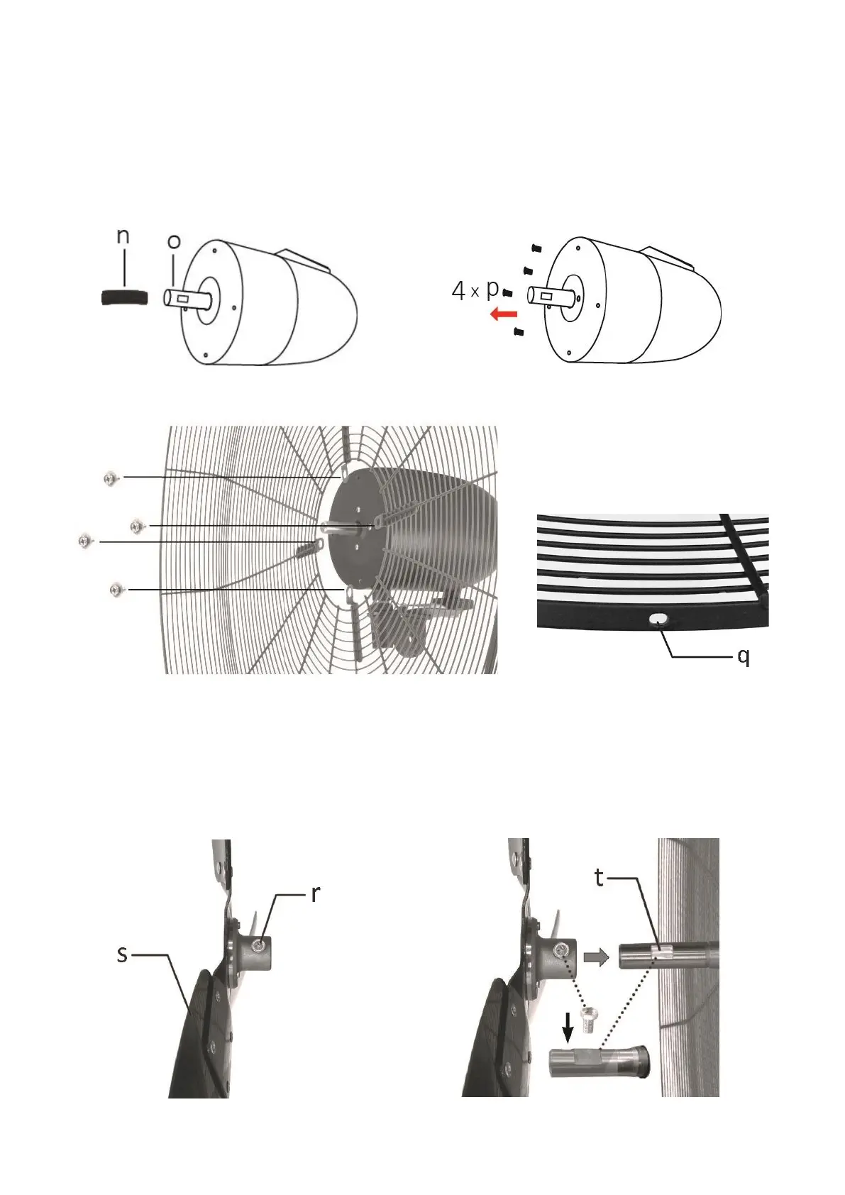 2. Inserire il centro della ventola (allineando con la parte scanalata/piatta (t) dell'albero motore) sull'albero
