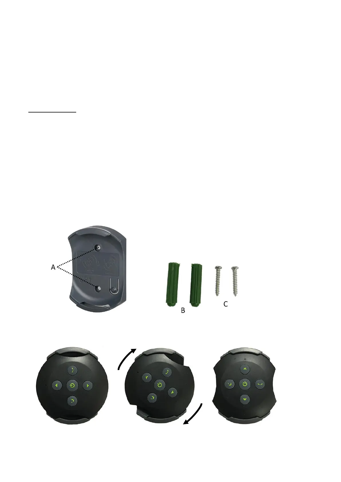 kaugjuhtimispuldi alus plastiktüüblitele ja seejärel kinnitage kaks kruvi (C) läbi aukude.