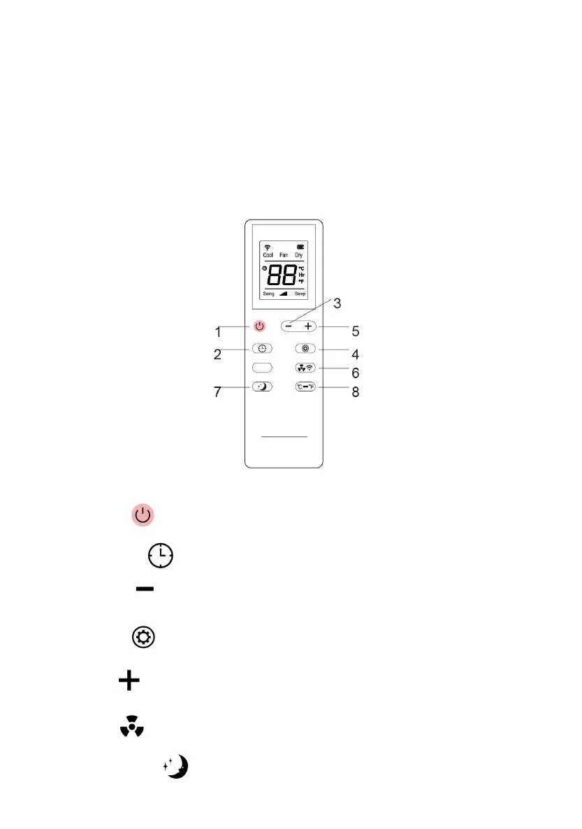 Mode: press the key to switch between cooling, fan, dehumidifying mode.