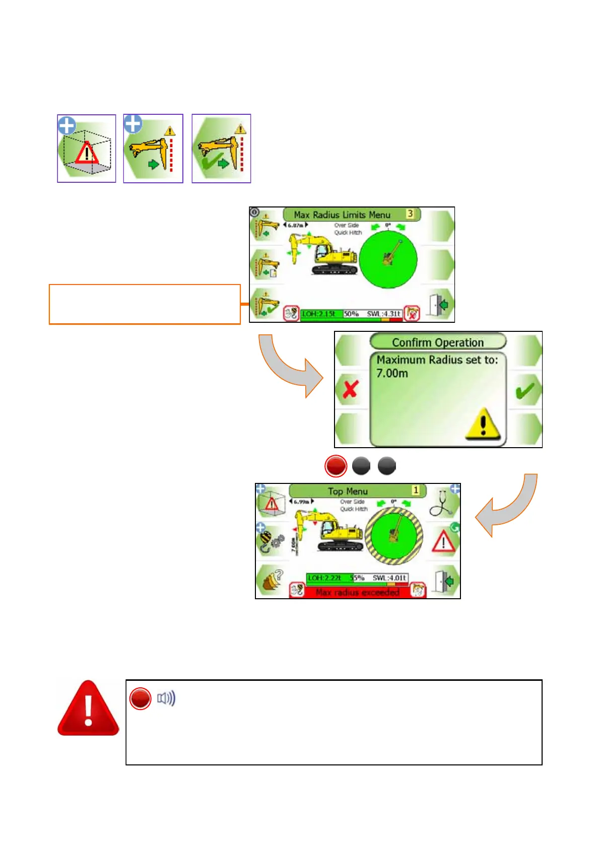 Once a max radius limit set, the internal alarm will sound and the