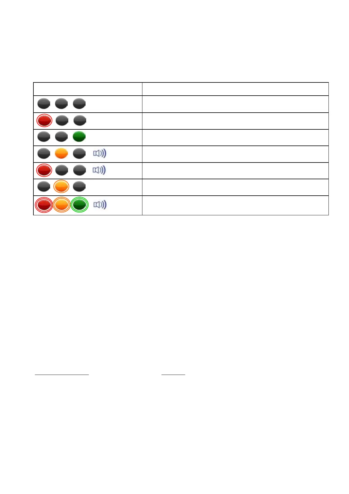 The table below shows the state of the three LEDs on the display and the internal alarm
