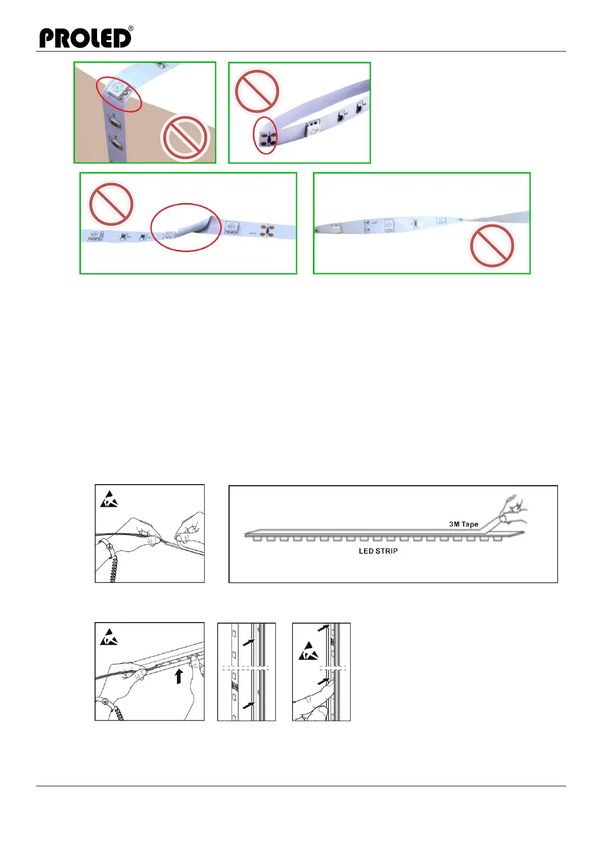 • Avoid fixing over profile splice. Because of thermal expanding or shrinking a damage of Flex Strip can happen.