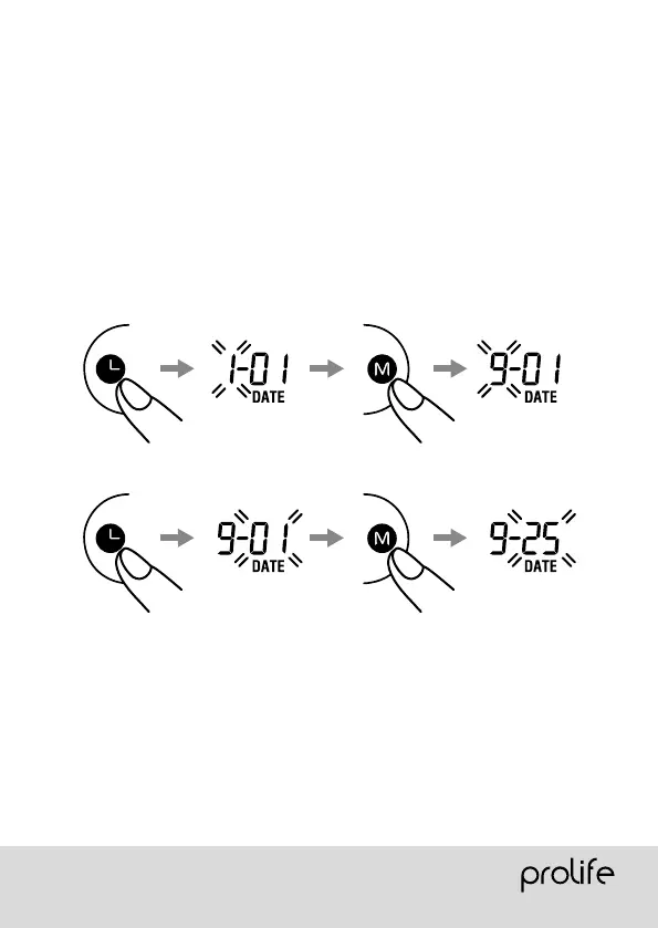 4. Press the TIME button again. The last two characters (day) are now blinking.