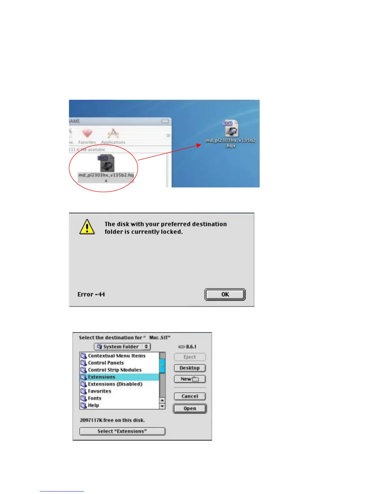 Step 1. Insert CD disk, Copy “md_pl2303hx_v135b2.hqx” file to desktop.