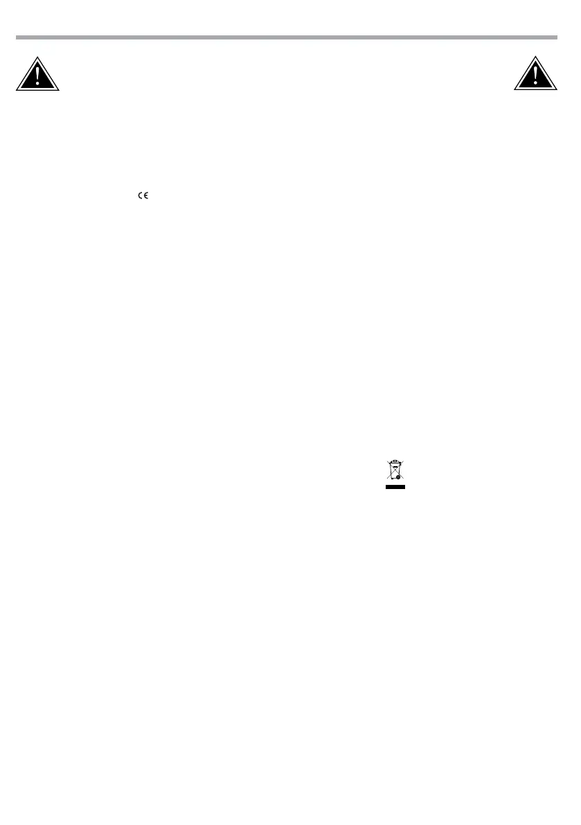 • Il dispositivo funziona con pericolosa tensione di rete 230V~. Non intervenire mai al suo interno al di