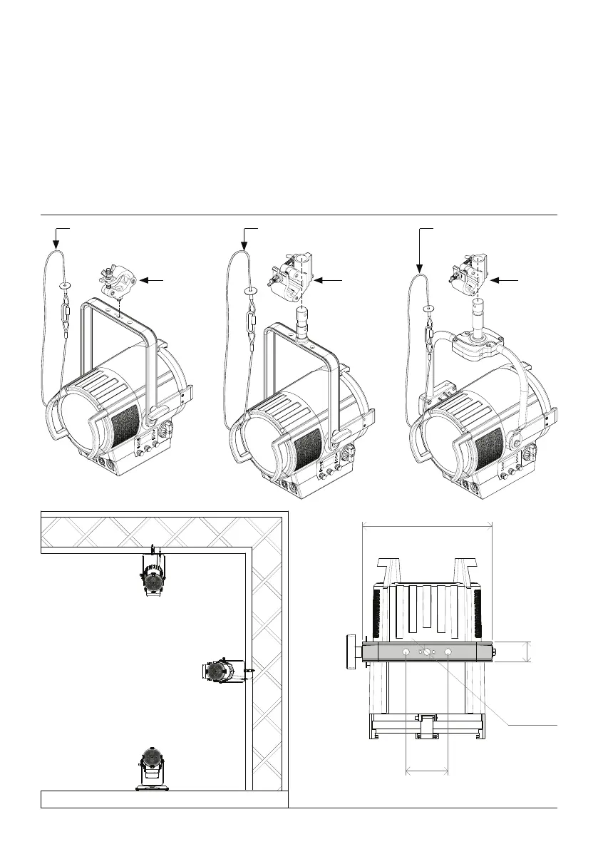 Warning! When clamping the xture to a truss or other structure at any angle, use clamps of half-cou-