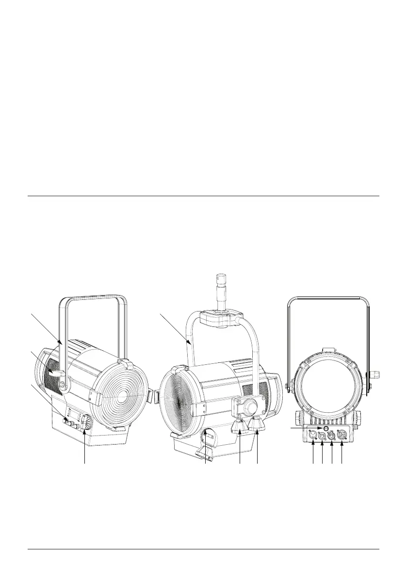 11. DMX IN (5-p XLR): 1 = GND, 2 = sign-, 3 = sign+, 4 N/C, 5 N/C;