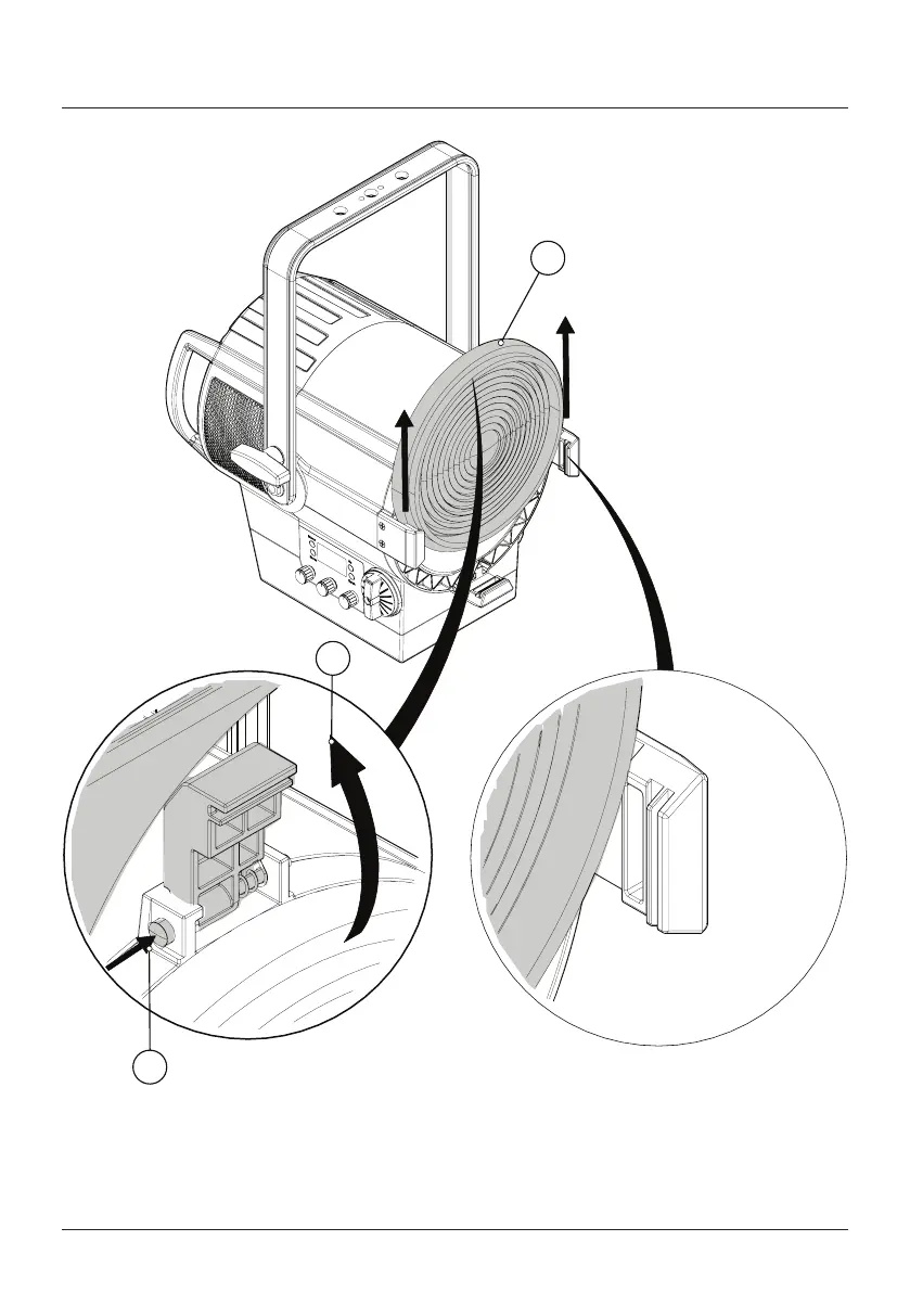 Press the pin (1) and the snap will automatically open upwards (2). Insert the narrow angle lens (3) into
