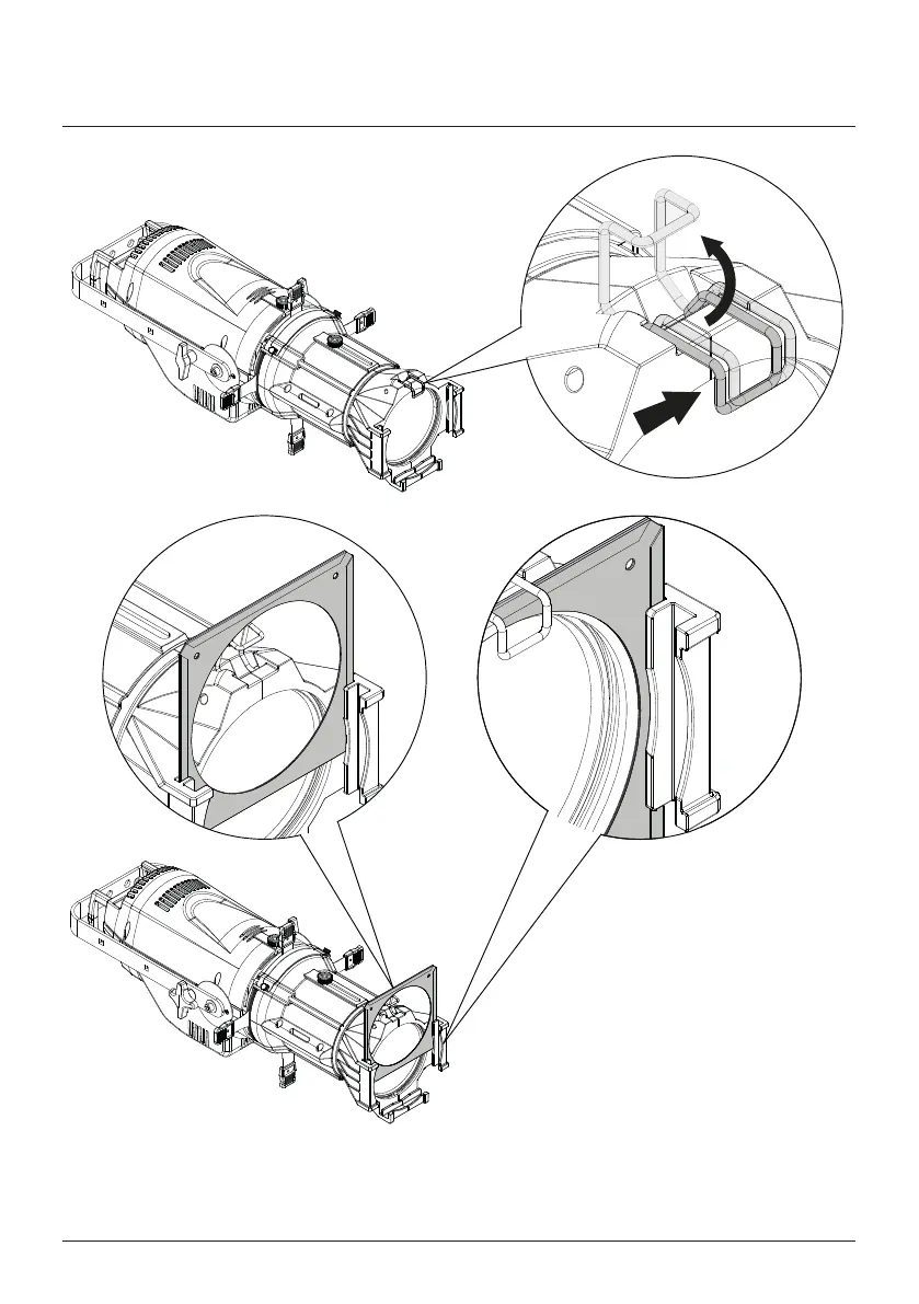 1. Push the clip, located at the top of the optics body, outwards and lift it. Then insert the lter into