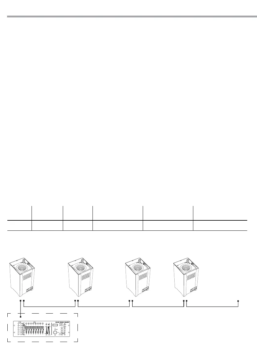 Le tabelle a pagina 18 indicano le modalità di funzionamento e i relativi valori DMX. Come interfaccia
