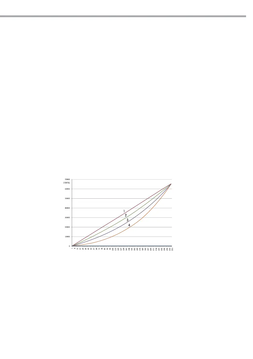 Selezionare la funzione [CURV] per regolare la forma della curva dimmer; far riferimento al graco ripor-