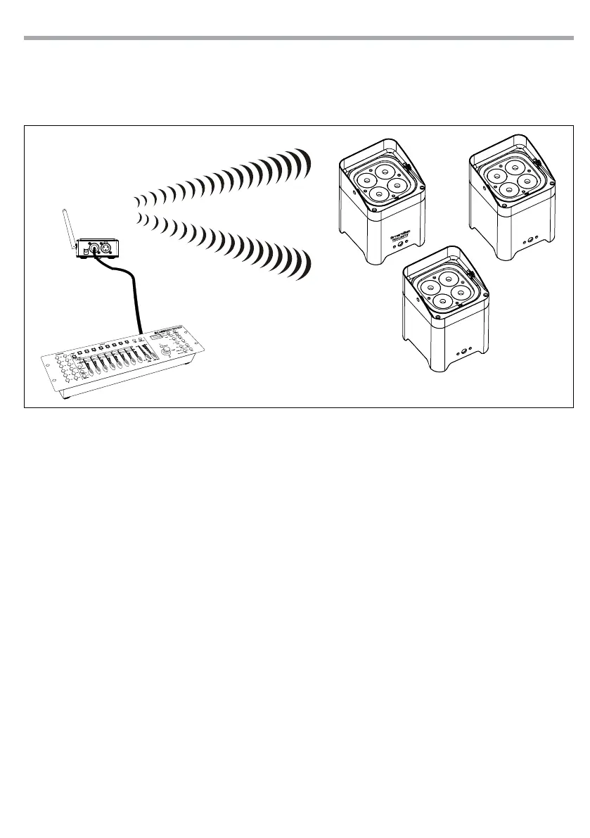 • Enter menu mode on the transmitter and set the input mode as DMX.