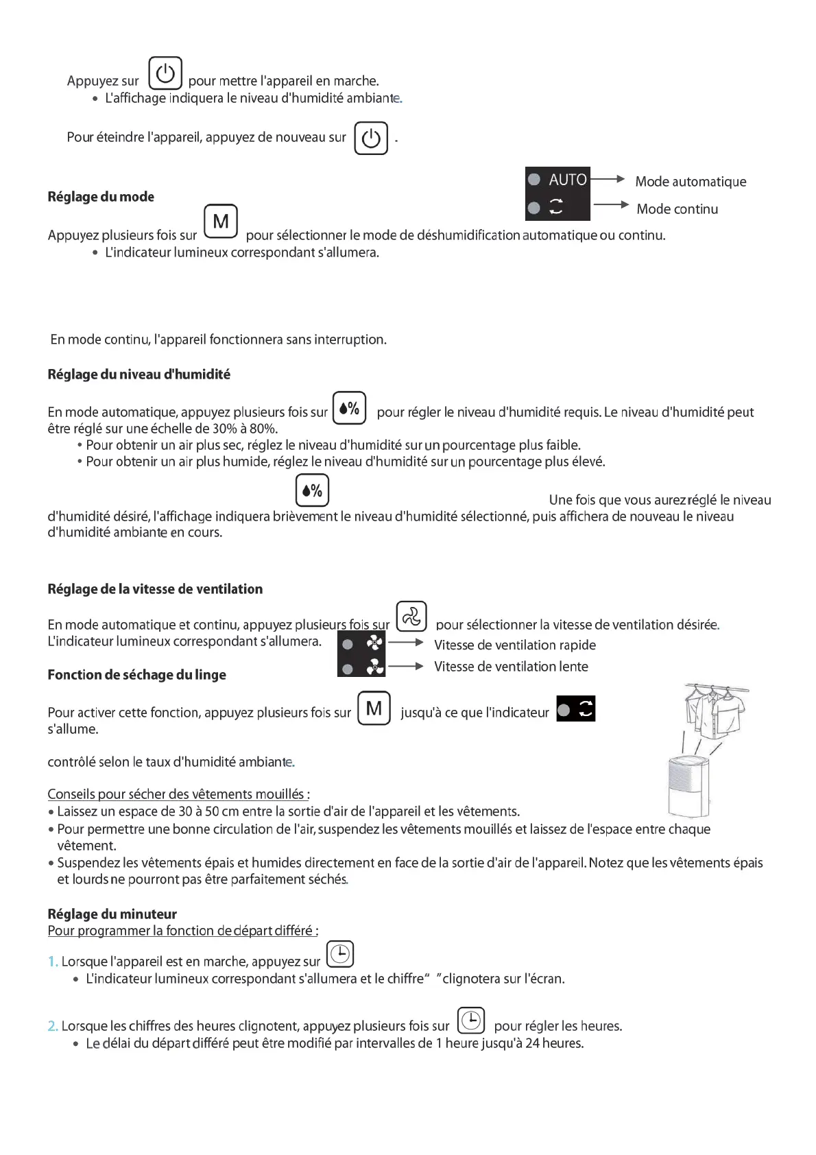 La vitesse du ventilateur peut être ajustée. Le niveau d’ humidité sera automatiquement