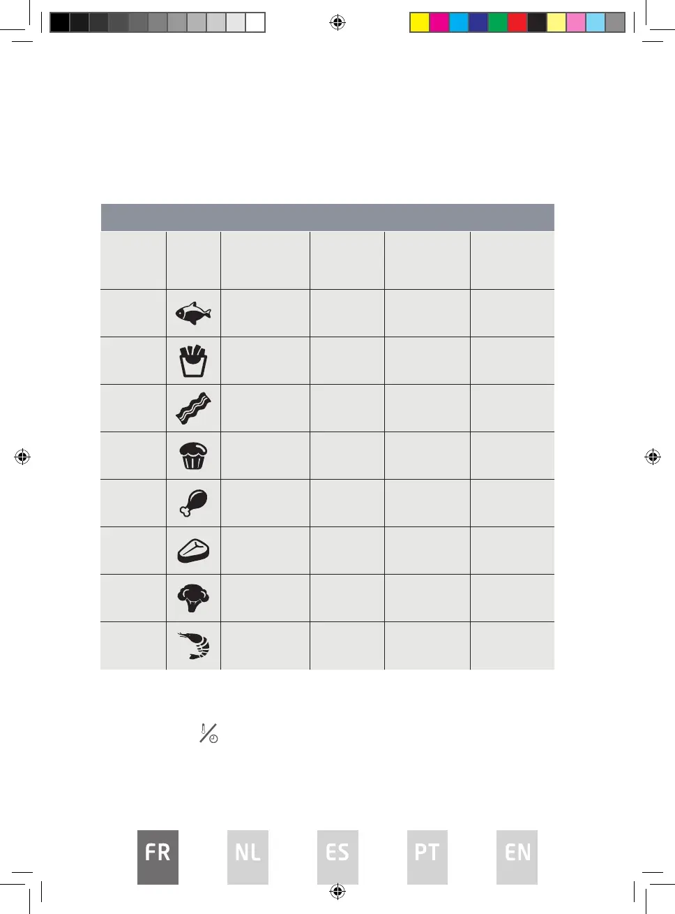 Tableau de cuisson pour les préréglages