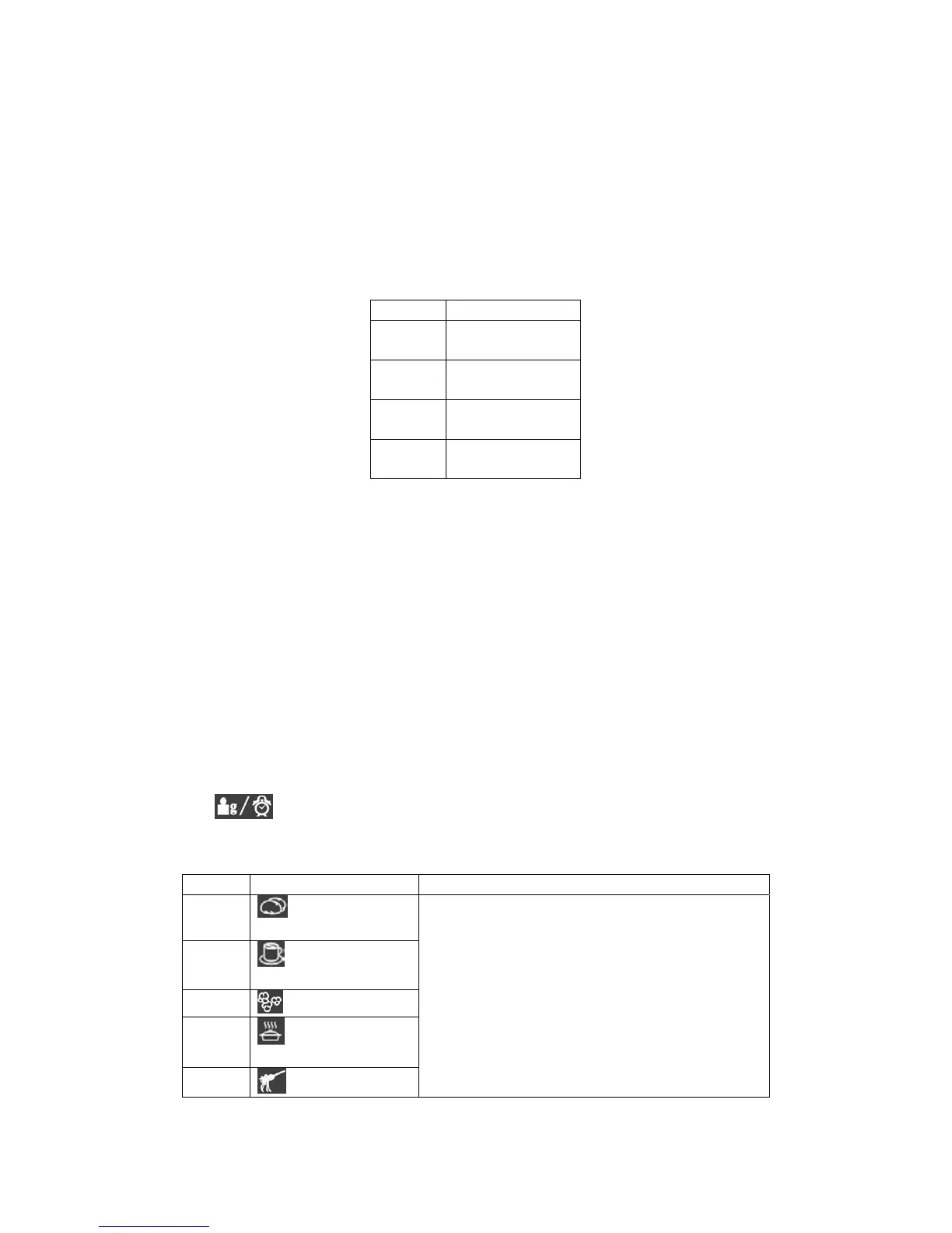 Per gli alimenti indicati nella seguente tabella non è necessario programmare la potenza e il tempo di