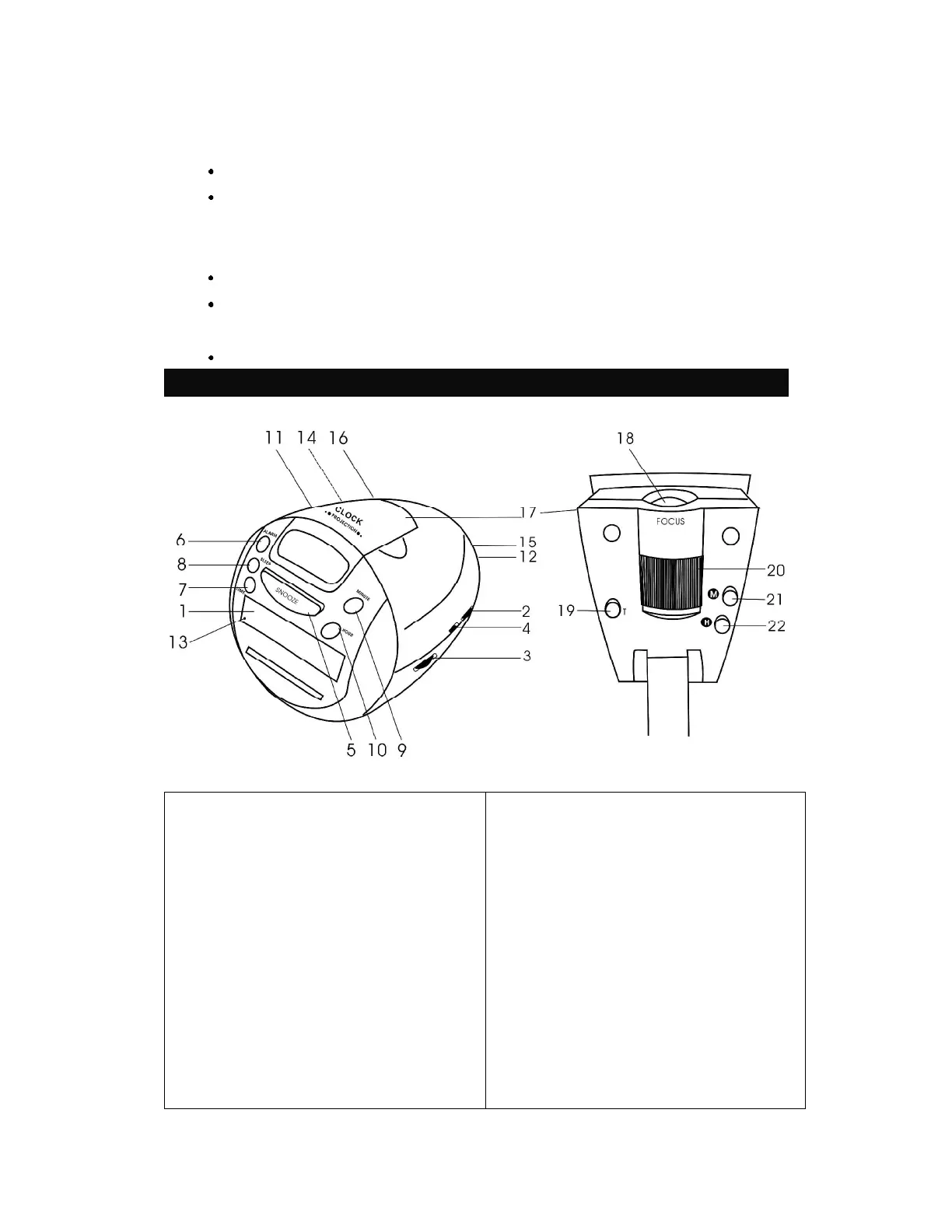 Do not place projector clock on places sensitive to vibrations or table edges.