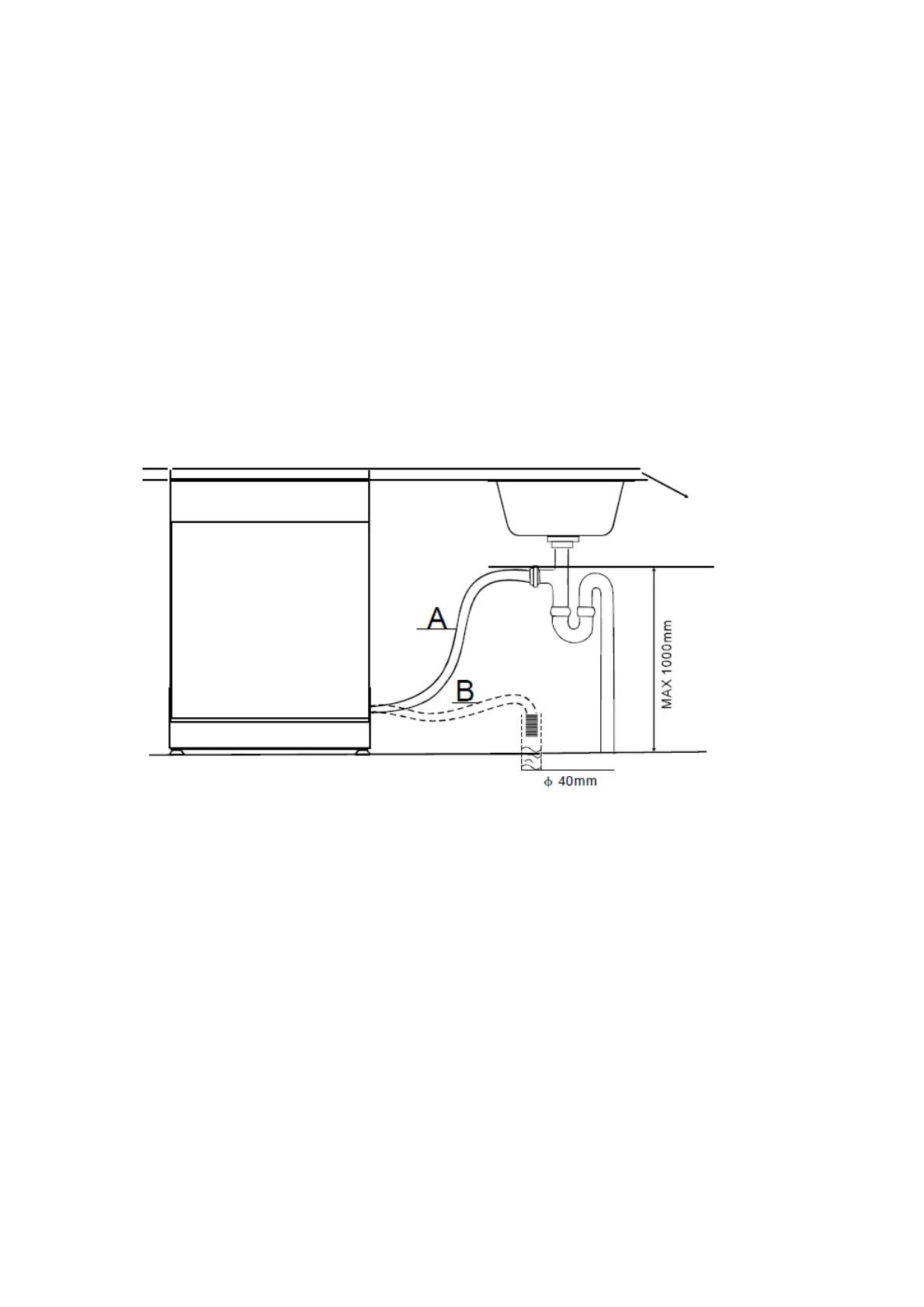 Hetuiteindevandeslangmoetwordengestoptineenafvoerbuisvanmaximaal1000mm