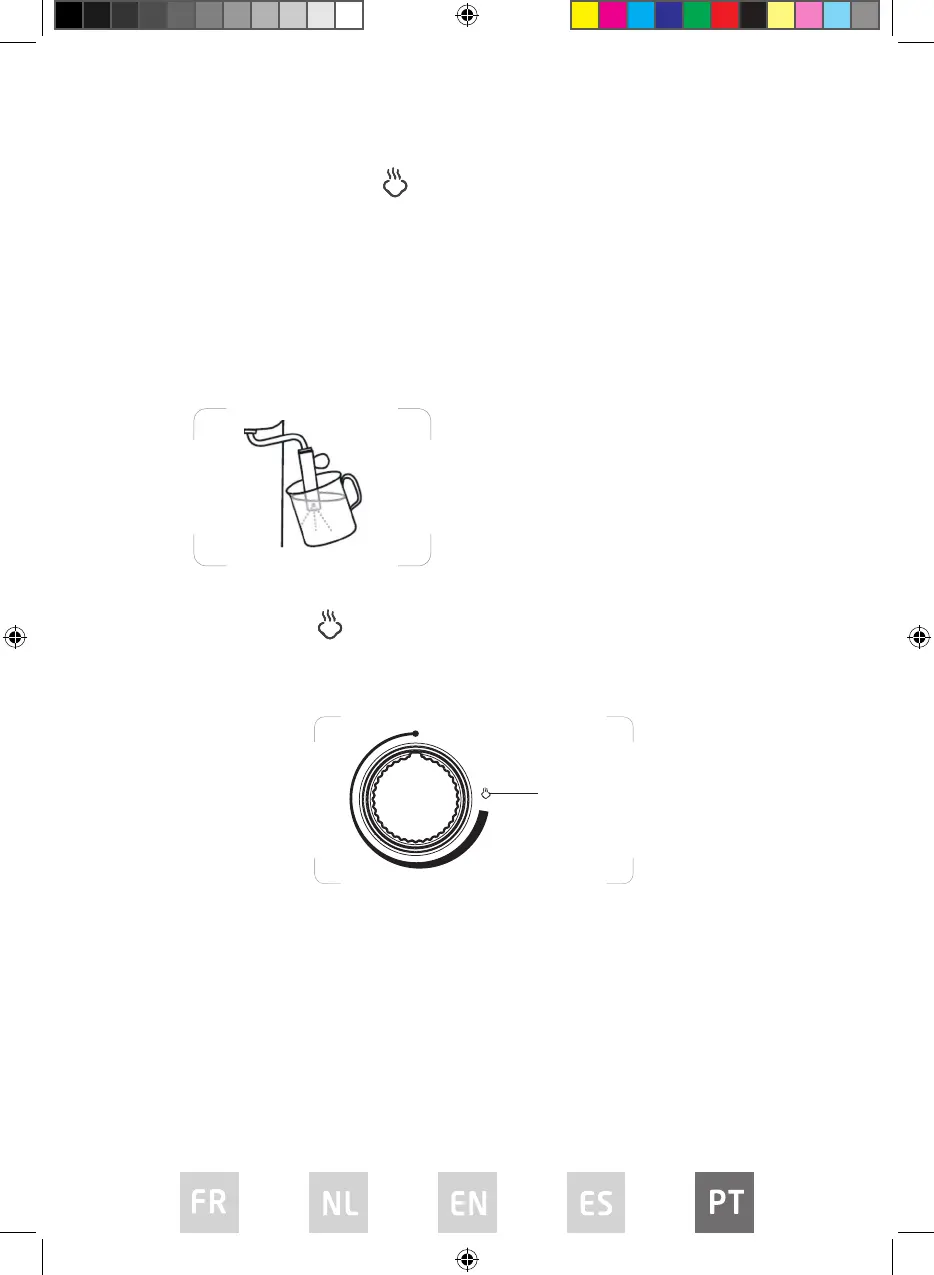 21. Coloque um recipiente vazio por baixo do tubo do vapor e rode o manípulo do