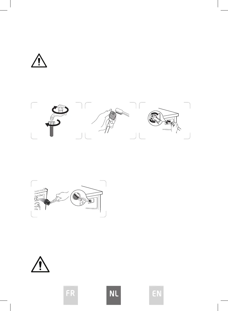 Plaats het lter terug op de waterinlaat en sluit de watertoevoerslang