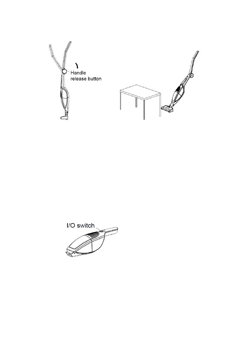 2. Switchonthehand‐heldvacuumcleanerbysettingtheI/Oswitchtothe“I”