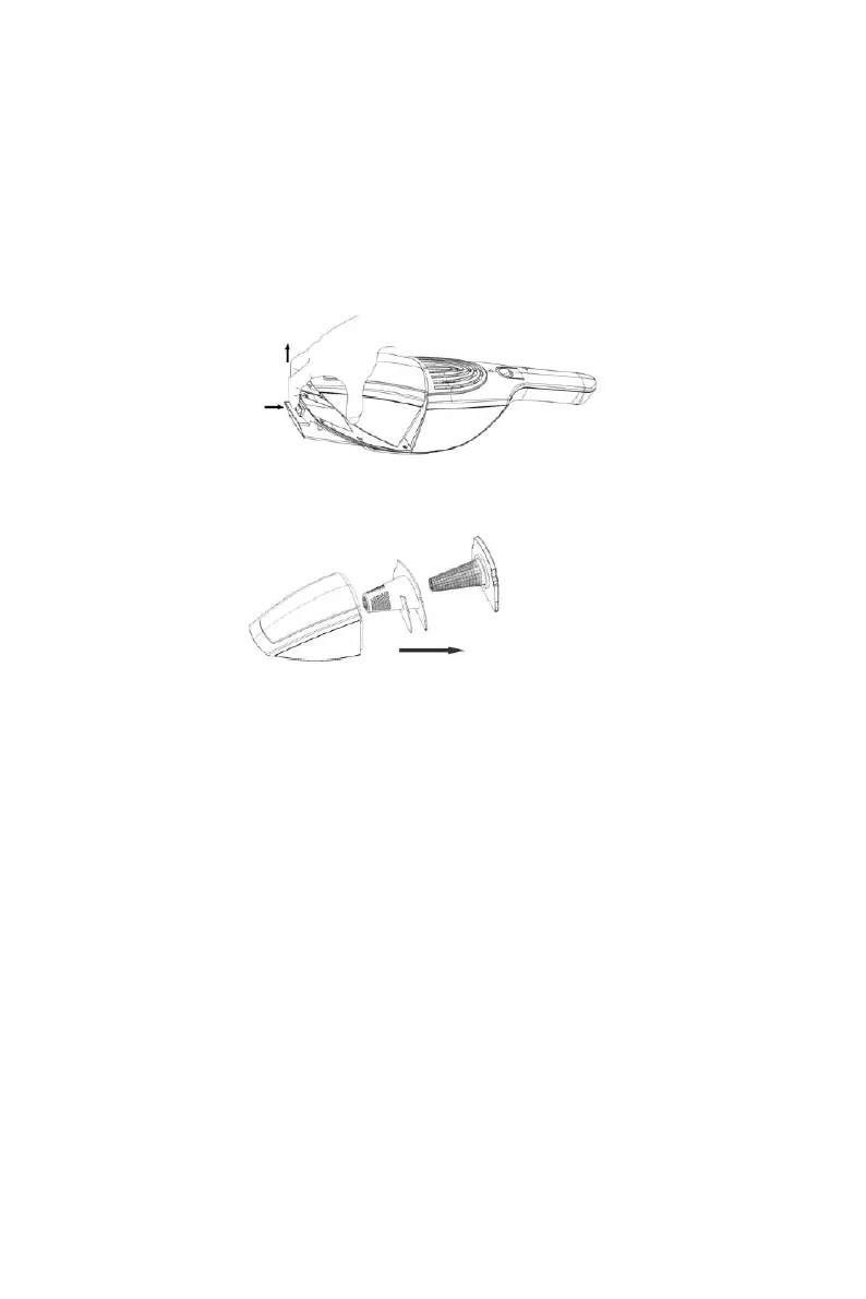 1. Stiskněteapodržtetlačítkoprouvolněníprachovénádoby.Odpojtejiod