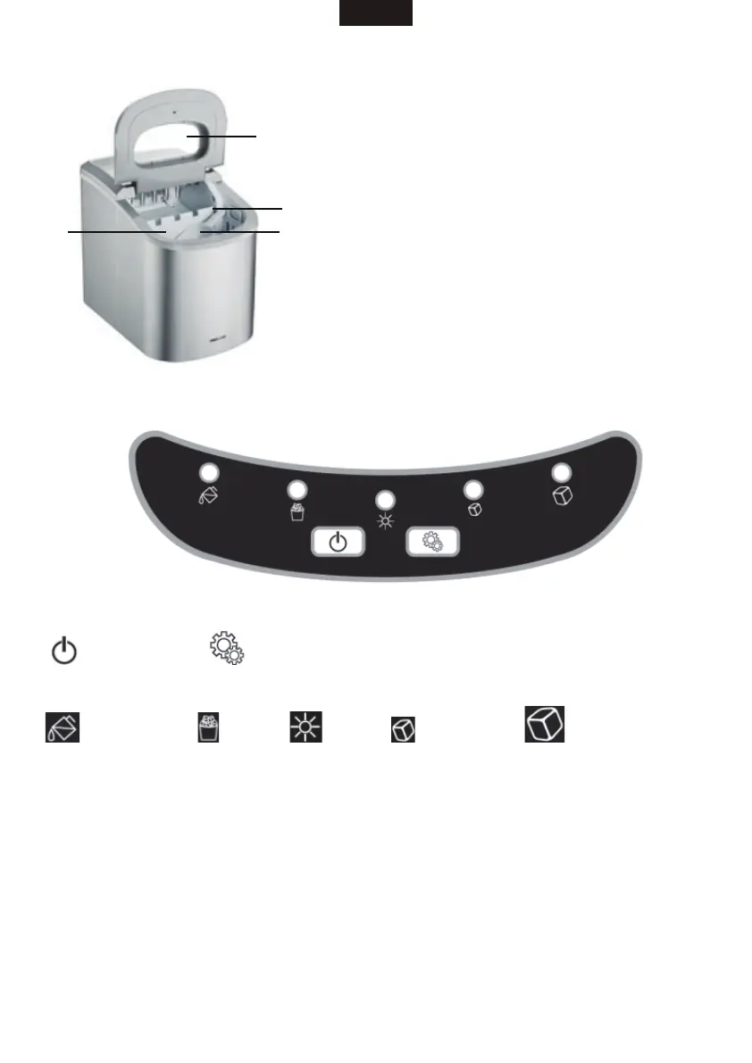 Power: ON/OFF Selecng ice cube size