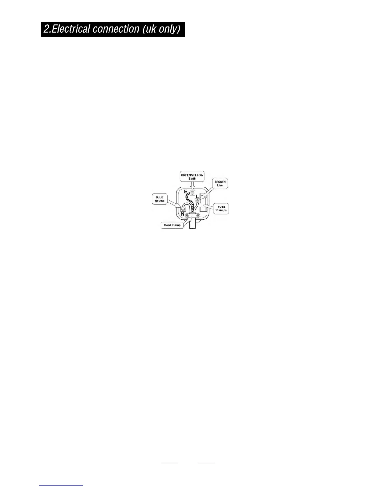 The appliance is supplied with a standard 13 amp 3 pin mains plug fitted with a 13 amp fuse. Should the fuse require replac-