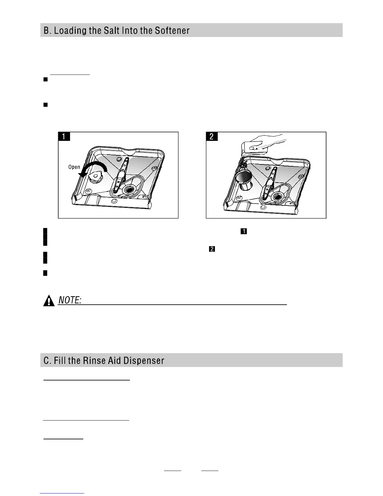 B Before the first wash, fill 1lt. of water in the salt container of your machine.