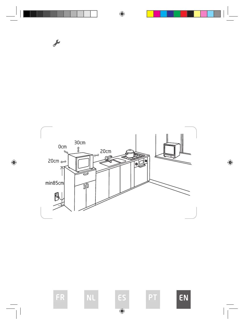 • A minimum clearance of 20 cm is required on both sides of the oven.
