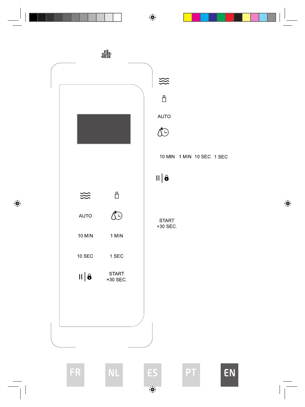 Press this button to set microwave power level.