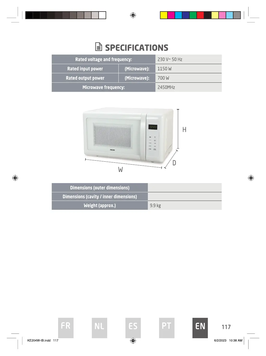 Proline KE204W - Specifications