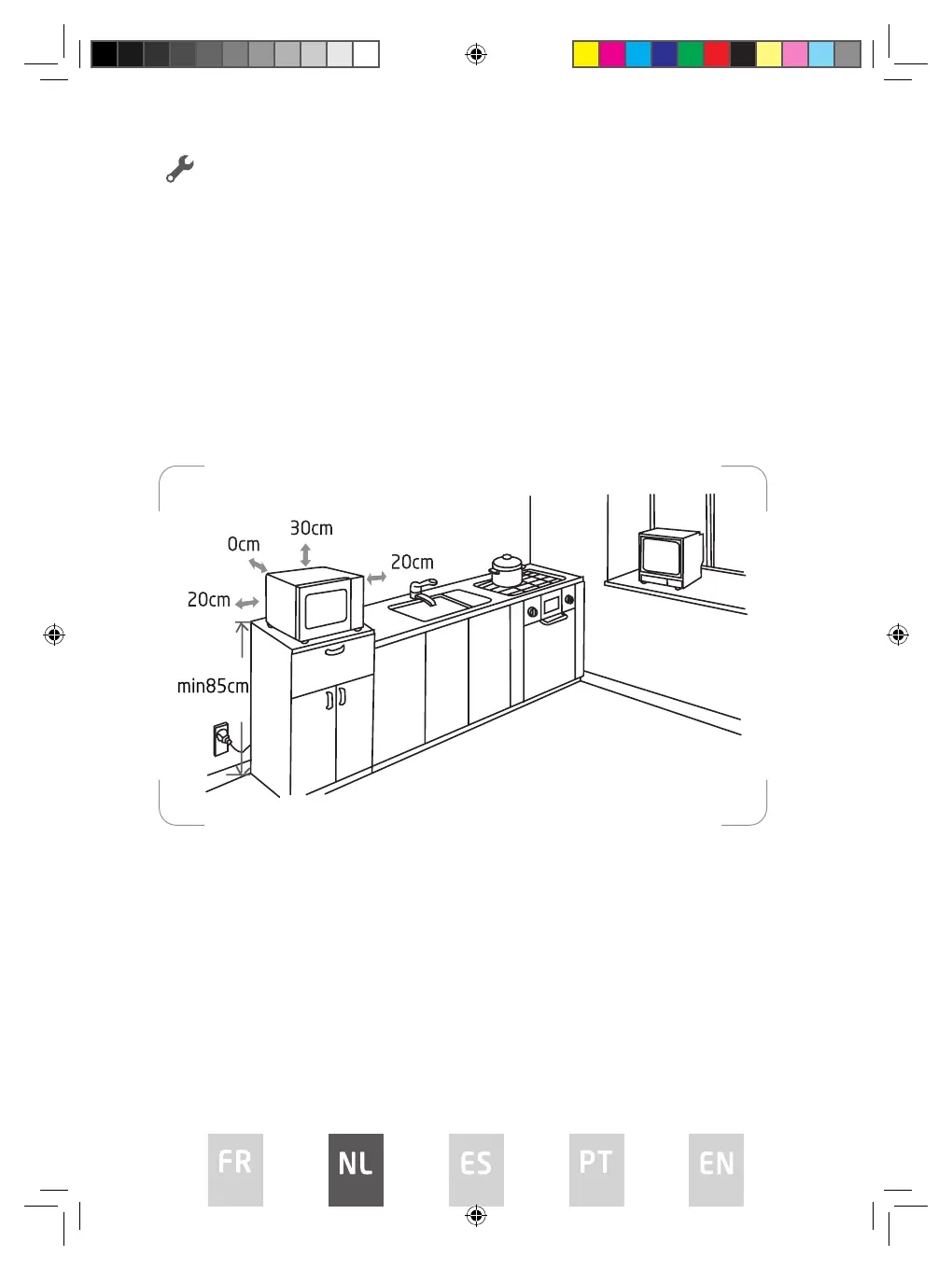 • Een minimale vrije ruimte van 20 cm aan weerskanten van de oven is vereist.