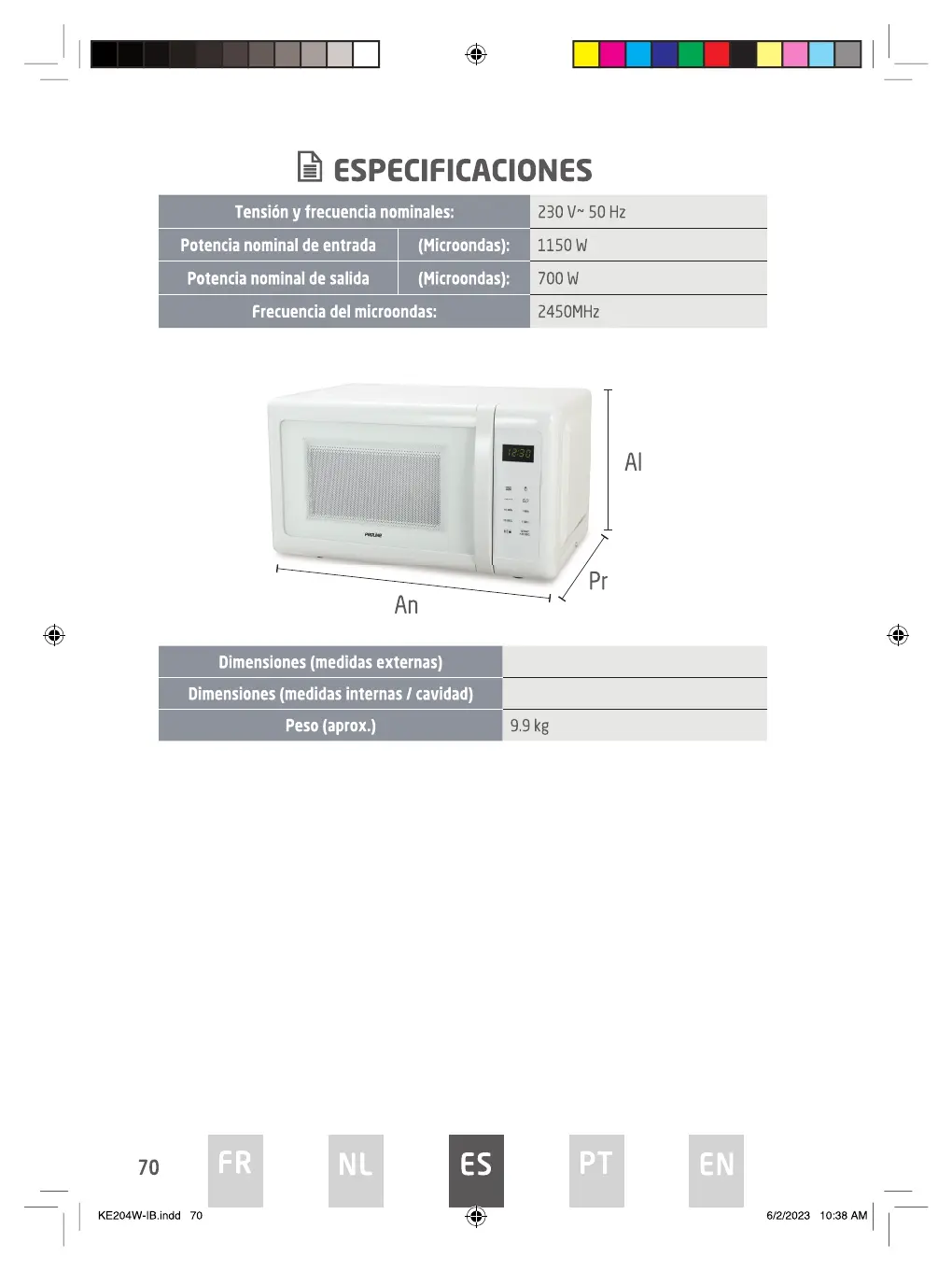 Proline KE204W - Especificaciones