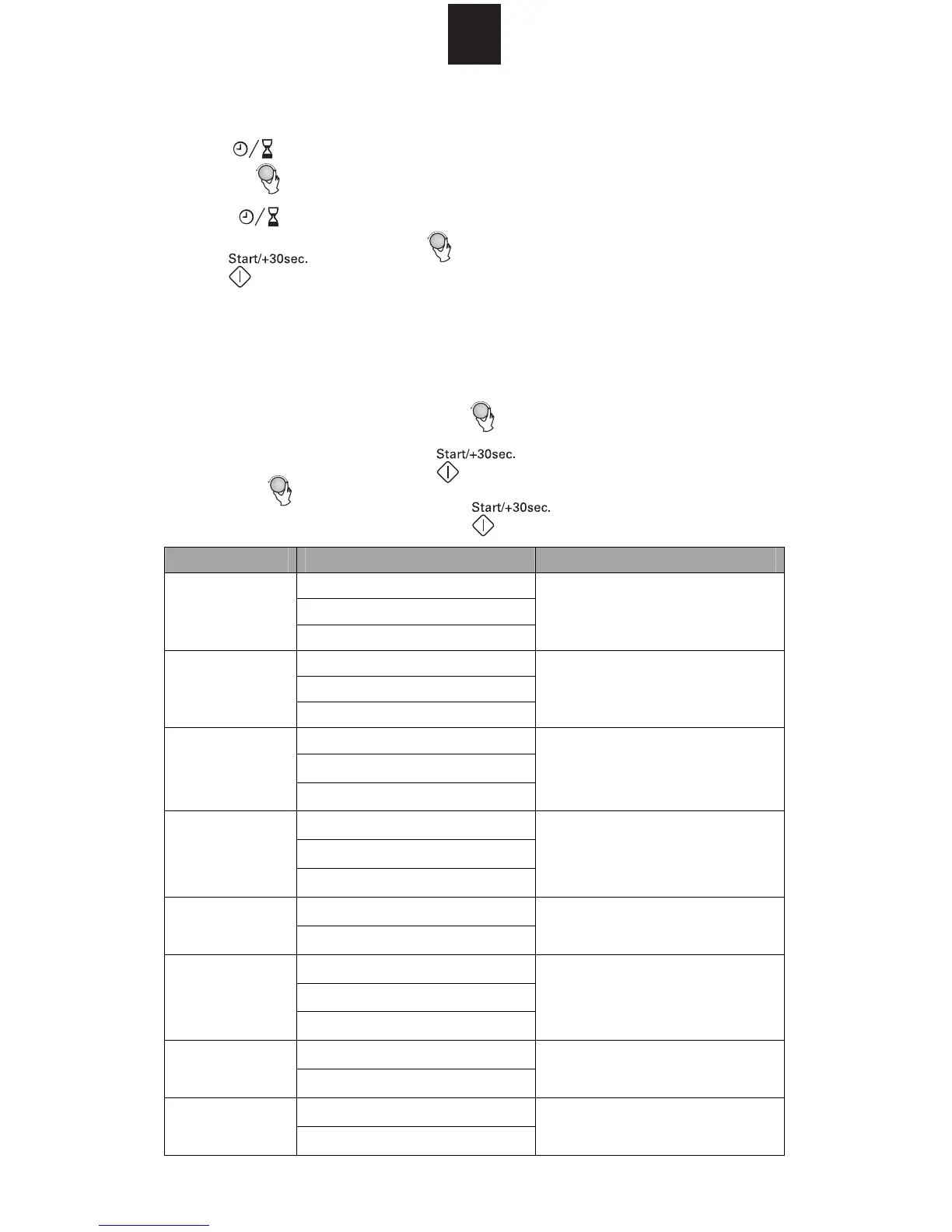 Pre jedlá z nasledujúcej tabuľky nie je potrebné naprogramovať výkon a čas