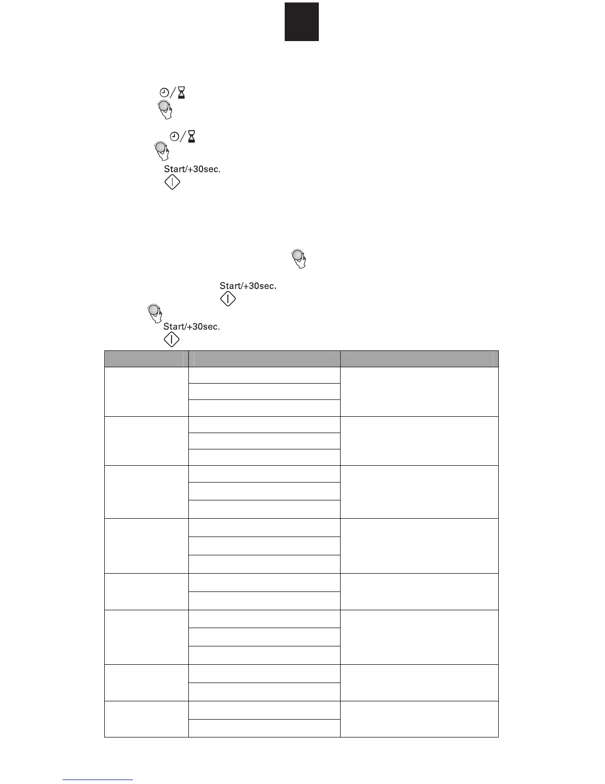 Pro potraviny v následující tabulce není nutné programovat dobu a výkon