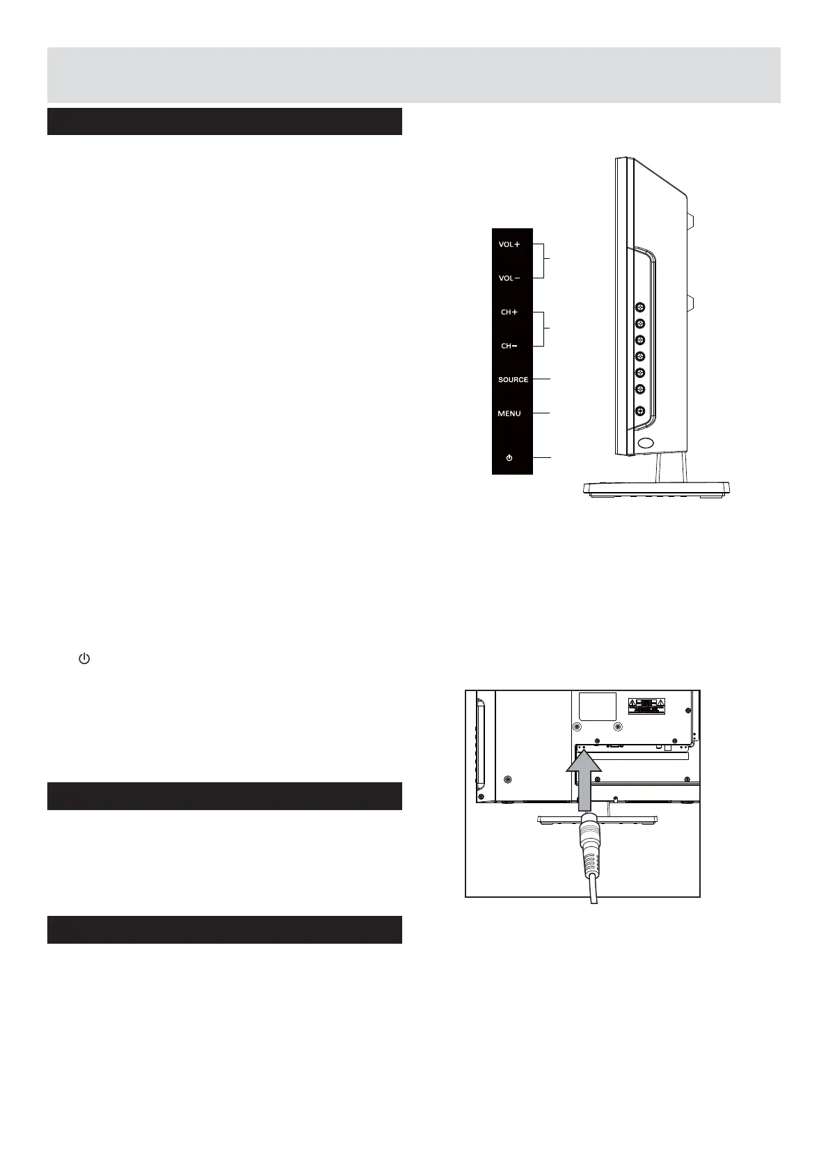 funções e o botão da energia na TV podem