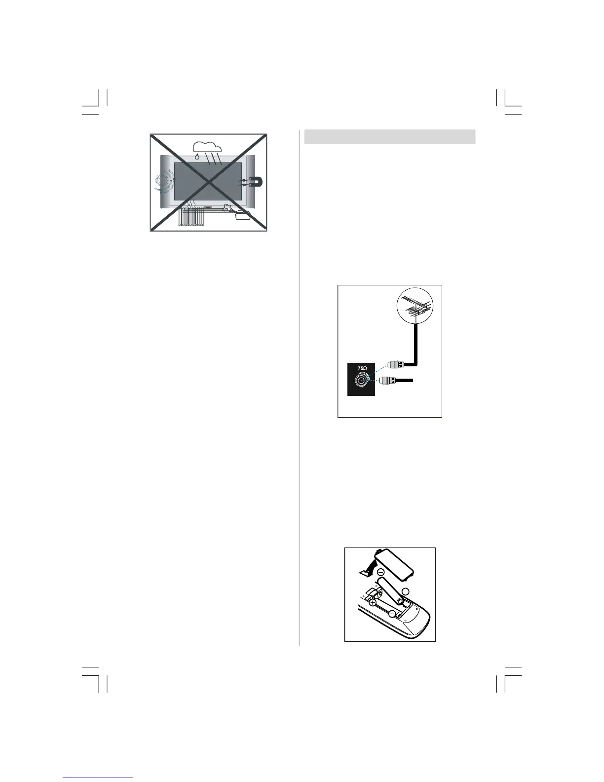 • Connect the aerial or cable TV plug to the Aerial input