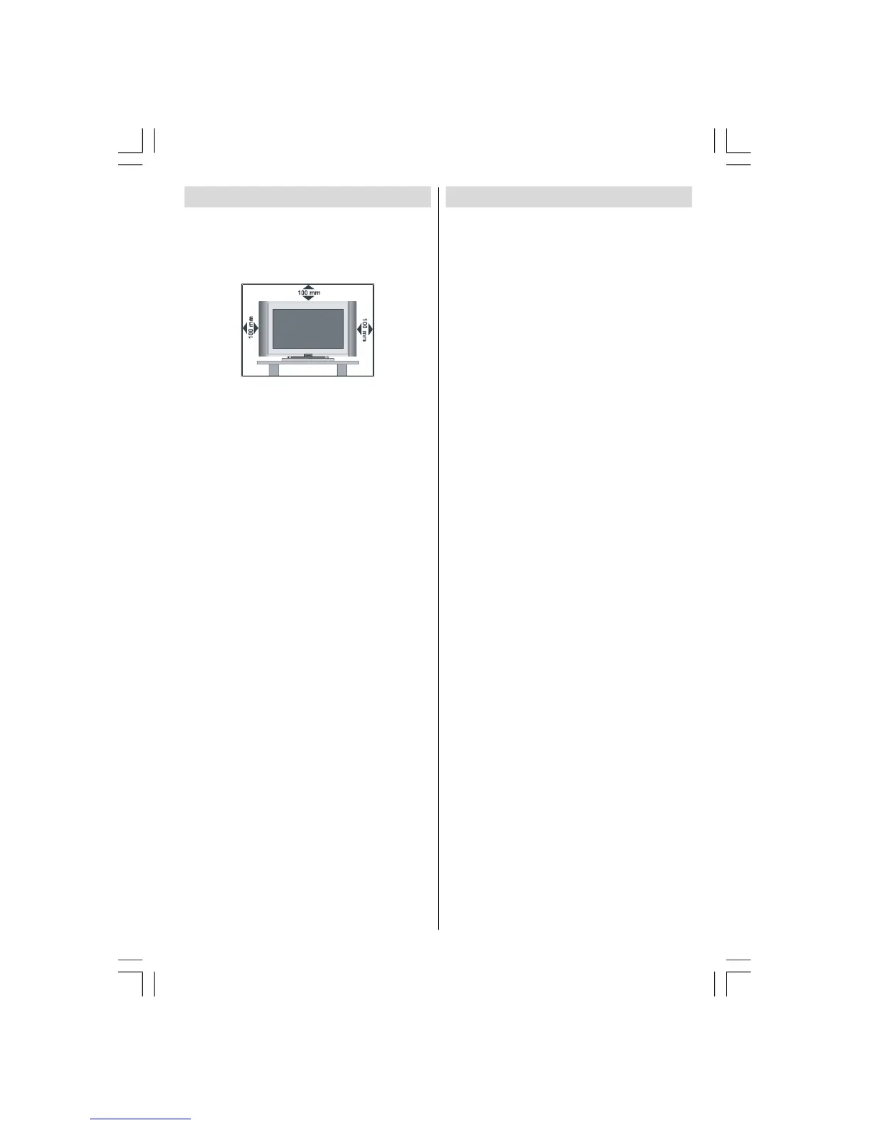 Havalandırma için, TV’nin çevresinde en az 10 cm