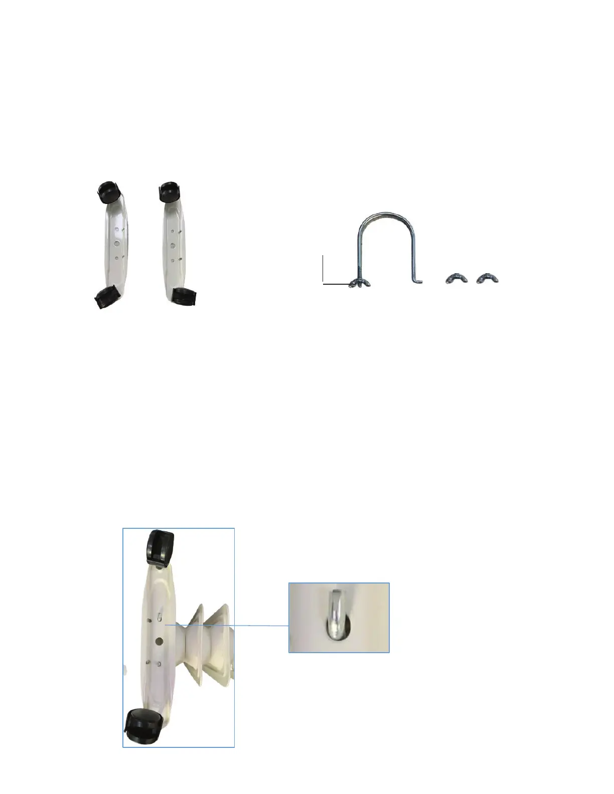 6. Insert both ends of U-bolts into the holes of the castor plates.