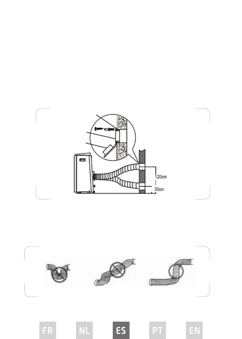 1. Haga un agujero de 125 mm en la pared para el adaptador del