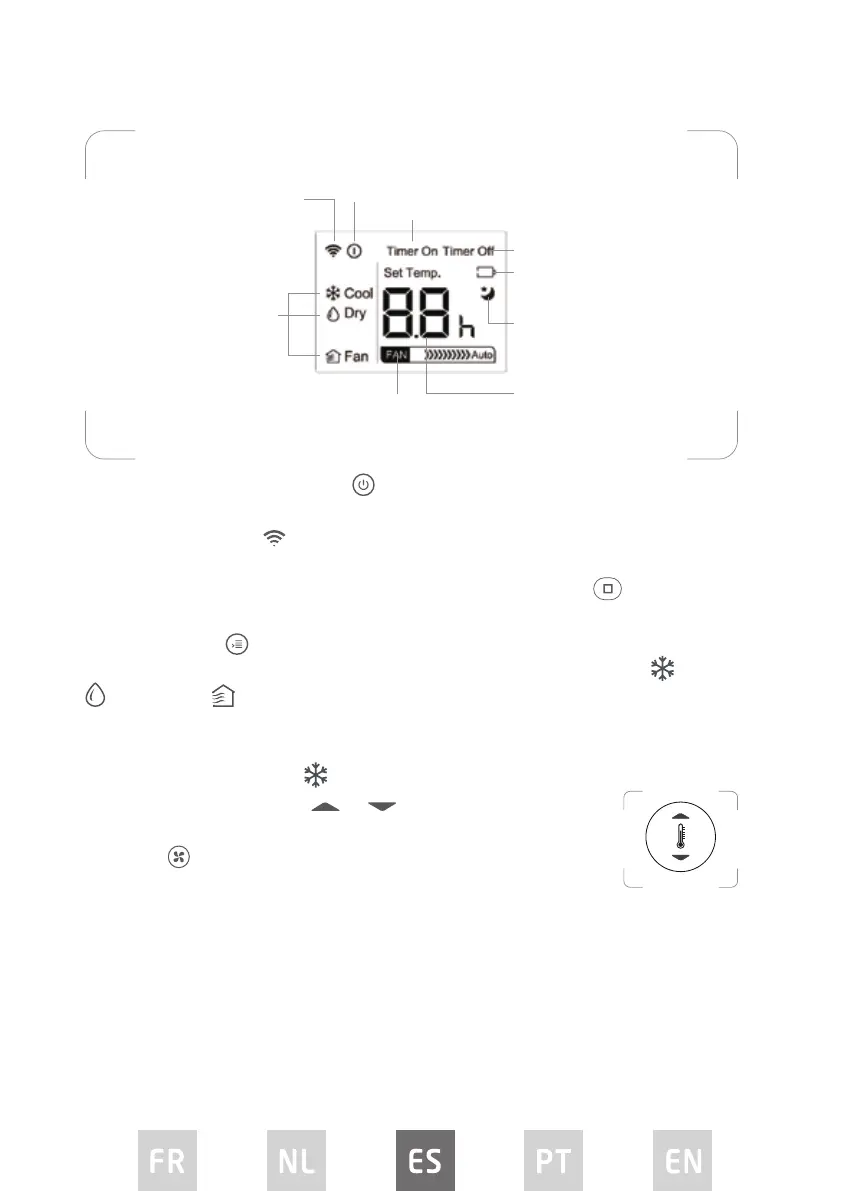 El símbolo correspondiente se iluminará en la pantalla del mando para indicar qué