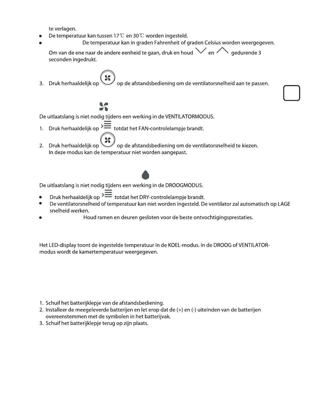 DROOG-/ONTVOCHTIGINGSMODUS