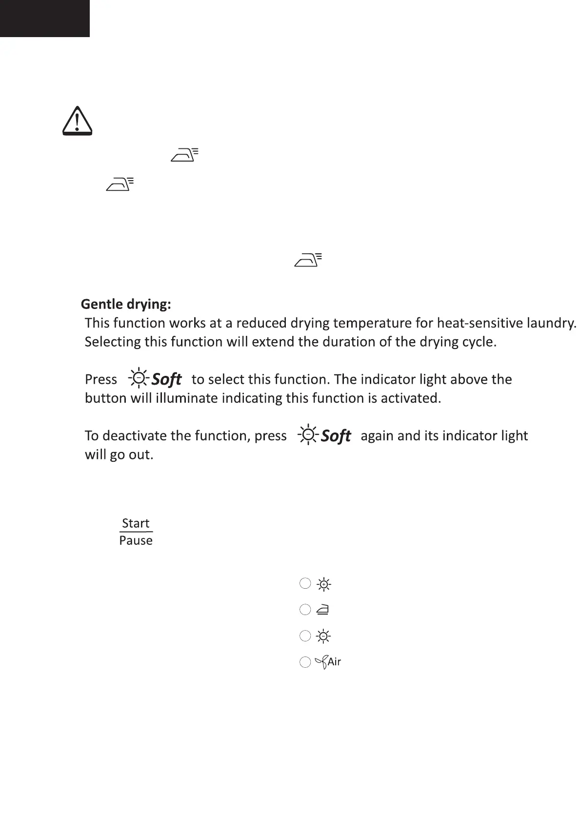 7.Select anti-crease/gentle drying additional function(s) when needed.